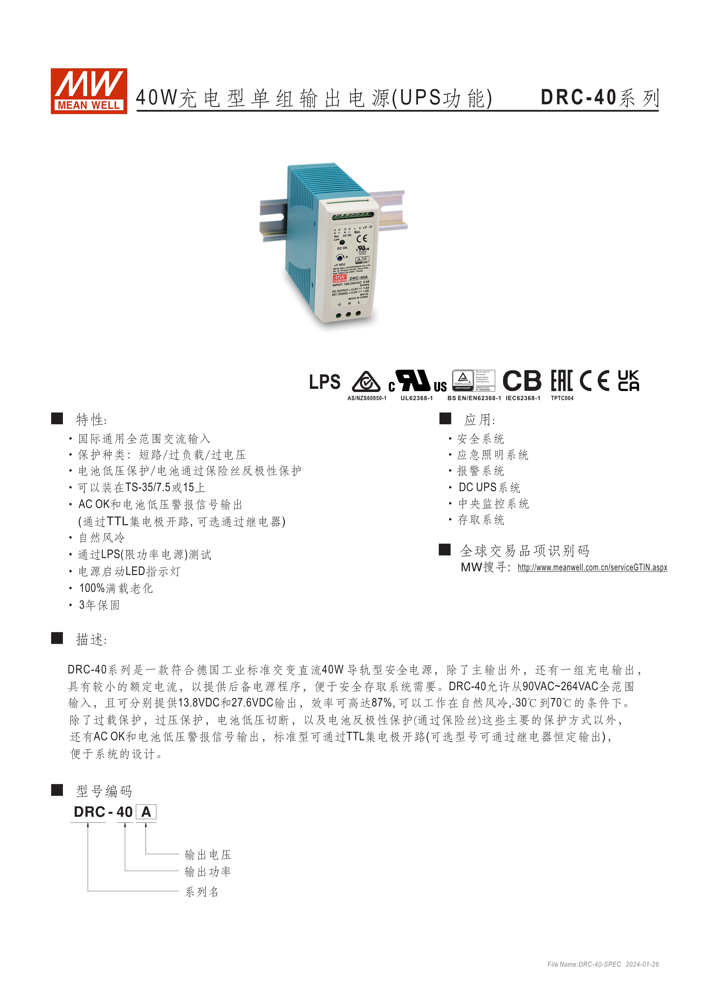 具UPS 功能(需外接電池) 適合用于安全監(jiān)控設(shè)備或各式電池備援系統(tǒng) 適合安裝于DIN rail TS35 / 7.5 或 15