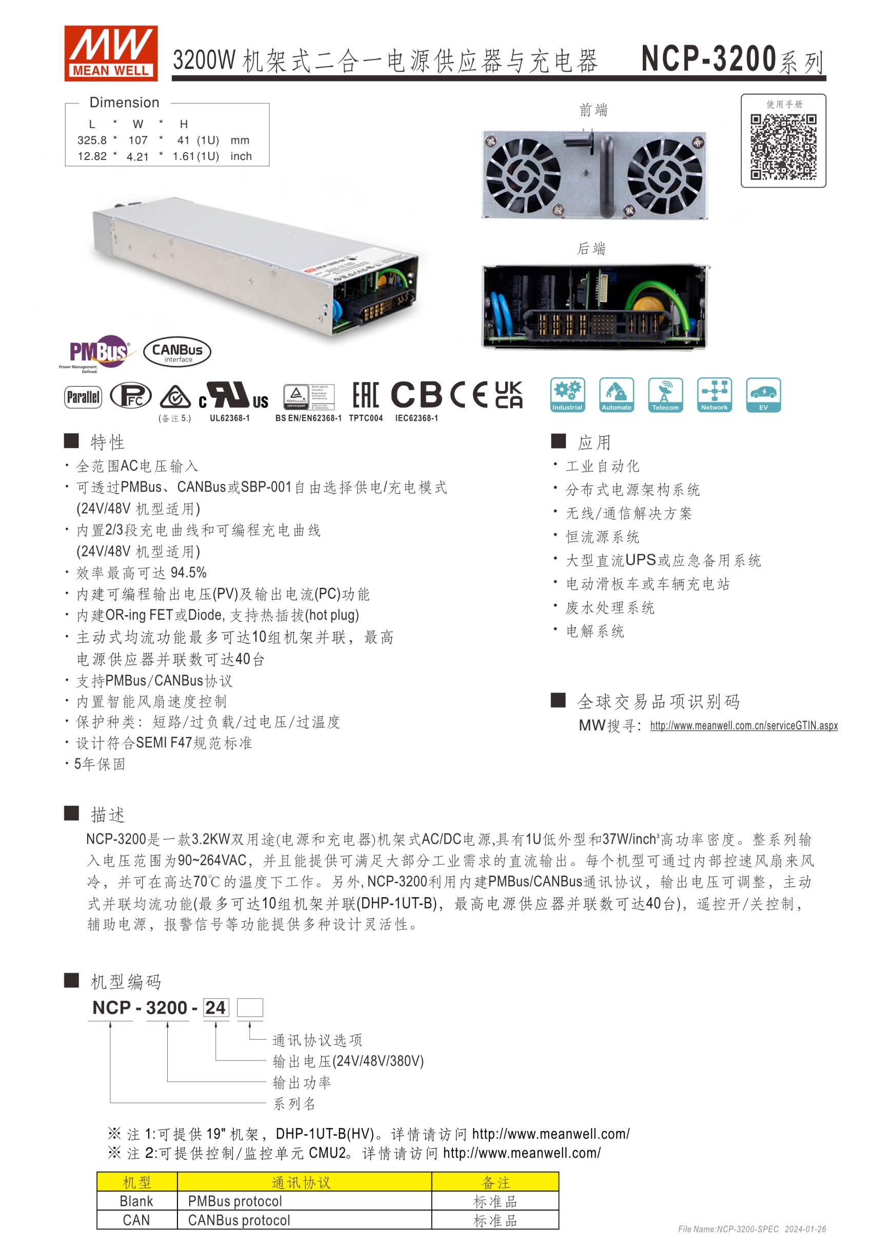 系統(tǒng)電源解決方案 (PDF) PMBus、CANBus可選擇供電或充電模式或SBP-001(僅適用于24V/48V型號(hào)) 內(nèi)置2/3段充電曲線(xiàn)和可編程曲線(xiàn)(僅適用于2V/48V型號(hào)) 效率高達(dá)94.5% 具有OR-ingFET余能,支持熱插(hotplug) 主動(dòng)式并聯(lián)均流多達(dá)10個(gè)機(jī)架(DHP-1UT-B)和可并聯(lián)之最大電源為40臺(tái) 具有1C接口,支持PMBus/CANBus協(xié)議
