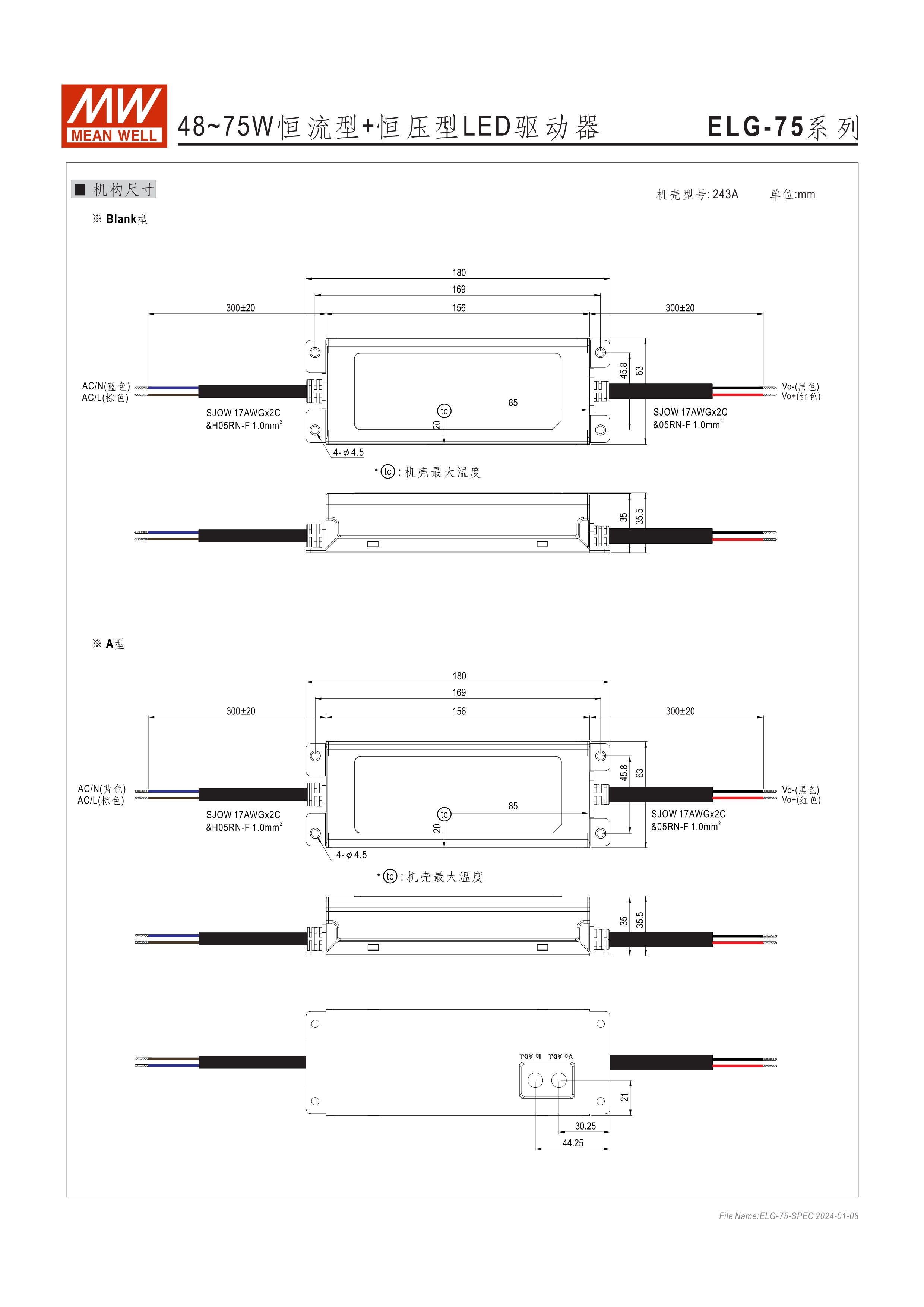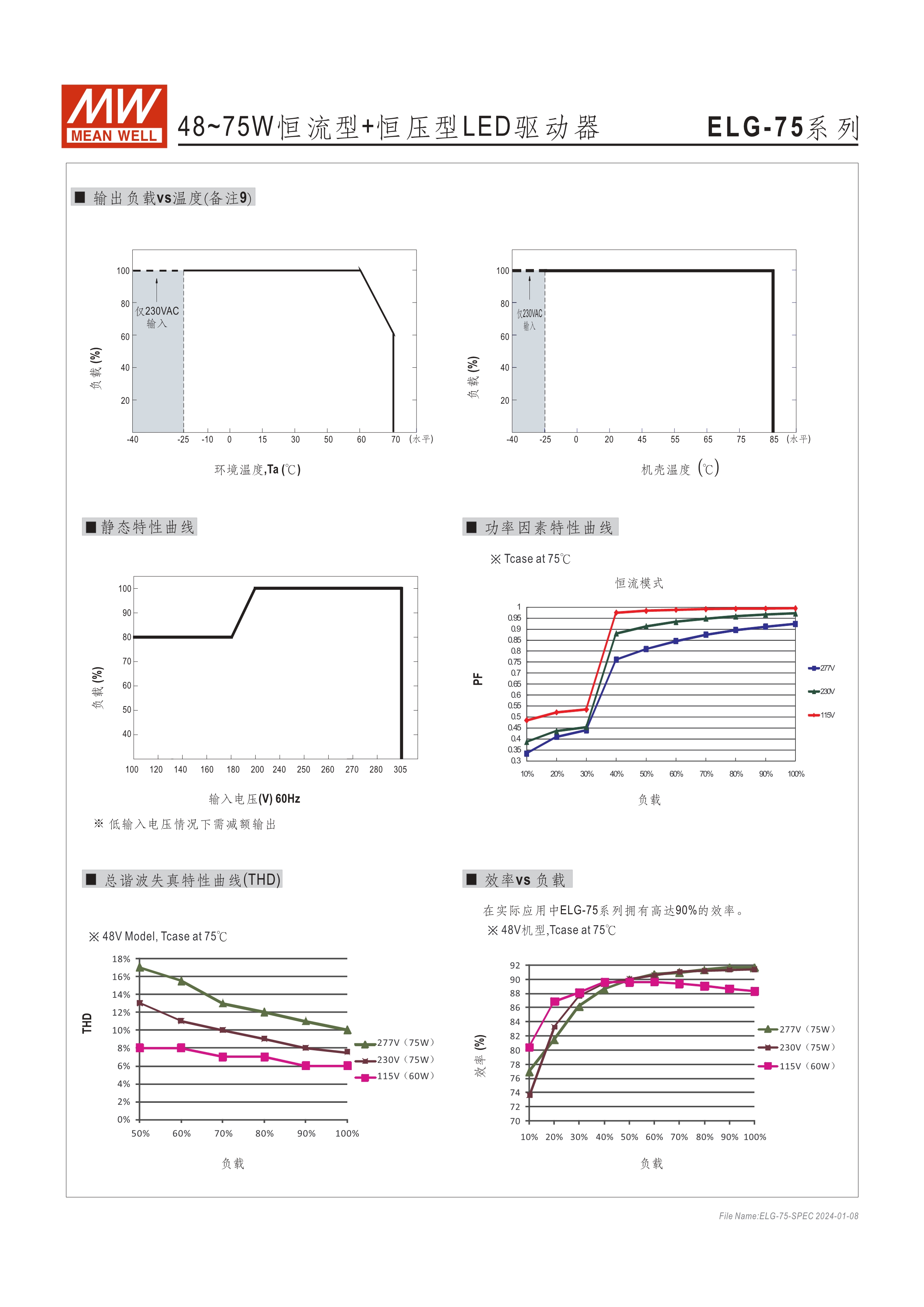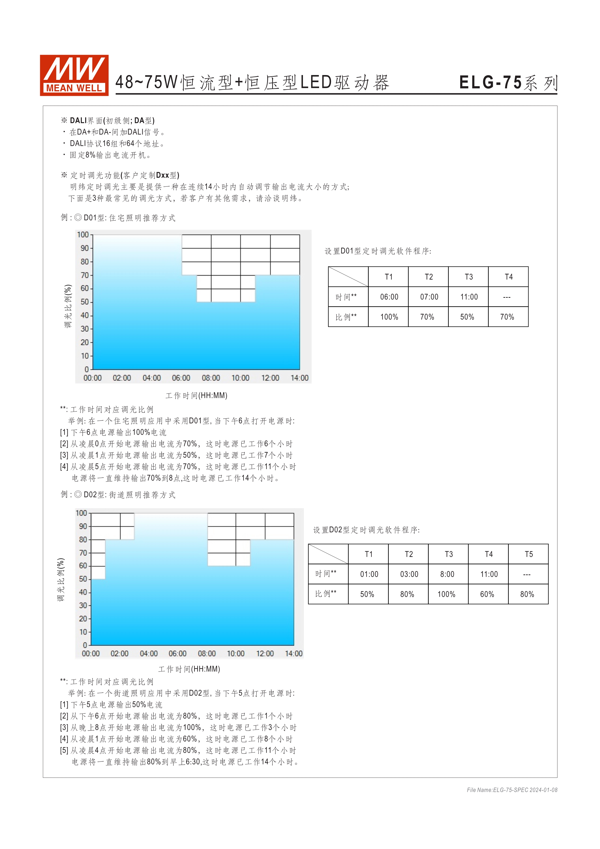 輸入范圍100~305VAC 金屬外殼,IP67/IP65防護等級可用于戶外與室內 功能選項 : 輸出可經由電位器調整;三合一調光(0~10Vdc或10V PWM信號或電阻,可關斷);智能定時調光;DALI;輔助直流輸出(ELG-150 BE-Type) Type "HL" LED電源適用在安裝于Class I, Division 2 類 危險地點之照明燈具 適合于LED路燈及戶外LED照明等應用 5年保固期