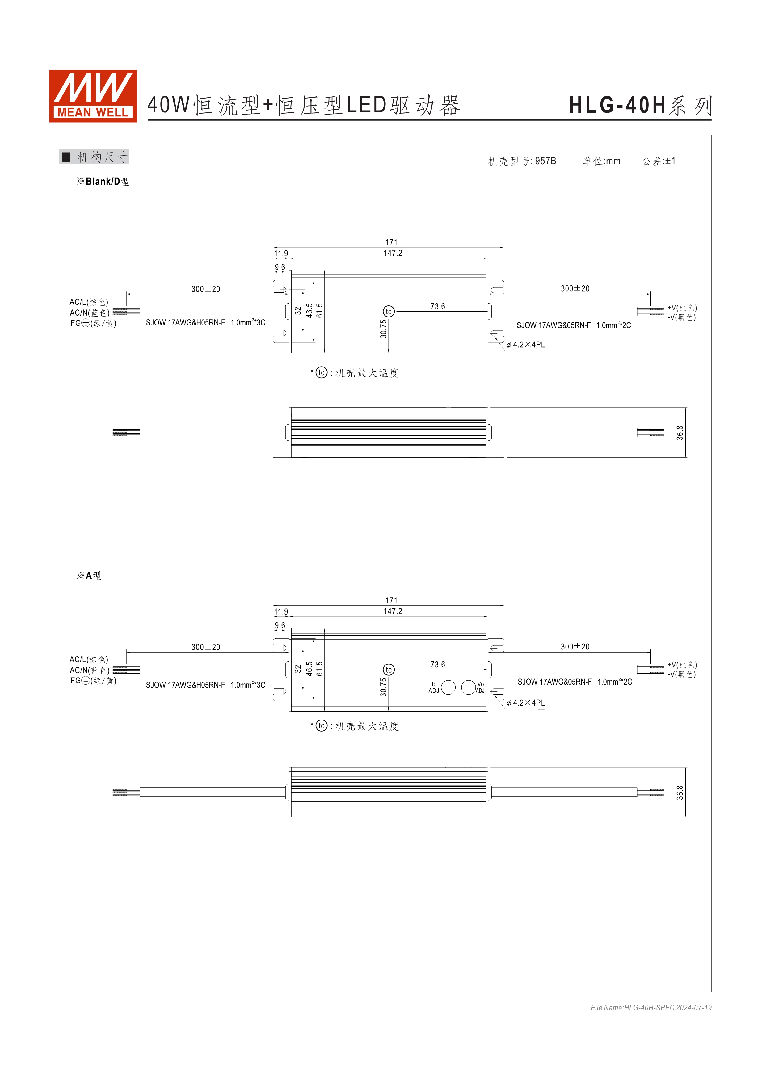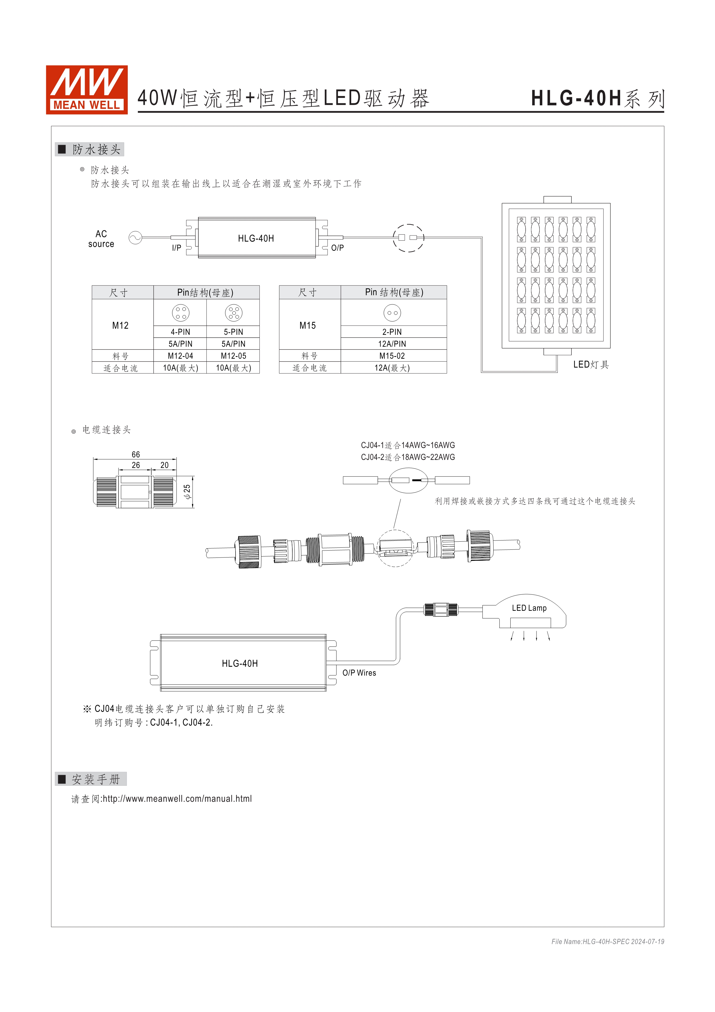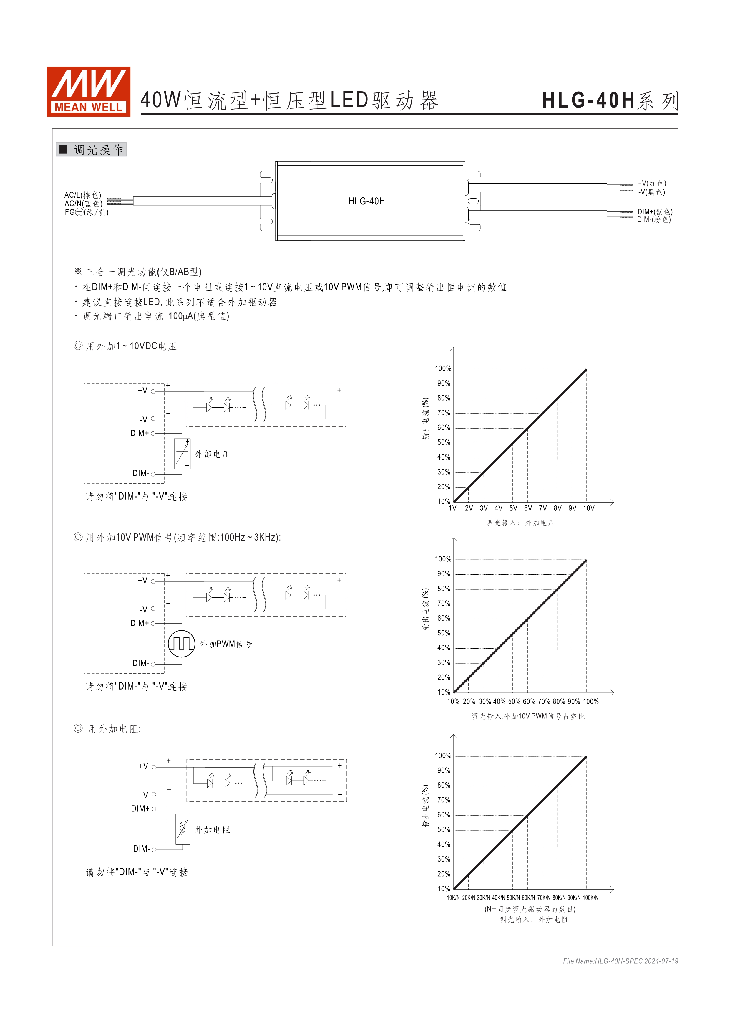 90~305VAC交流輸入,內(nèi)建主動式功率因子矯正功能(active PFC) 96%超高效率(HLG-600H) 金屬外殼,IP67/IP65防護等級可用于戶外與室內(nèi) 功能選項 : 輸出可經(jīng)由電位器調(diào)整;三合一調(diào)光(1~10Vdc或10V PWM信號或電阻);定時調(diào)光 Type "HL" LED電源適用在安裝于Class I, Division 2 類 危險地點之照明燈具 適合于LED路燈、戶外照明及需求高IP防護等級之戶外應(yīng)用 另有IP68/-55℃開機/10G震動承受能力等選項(細節(jié)請與明緯聯(lián)系) 7年保固期