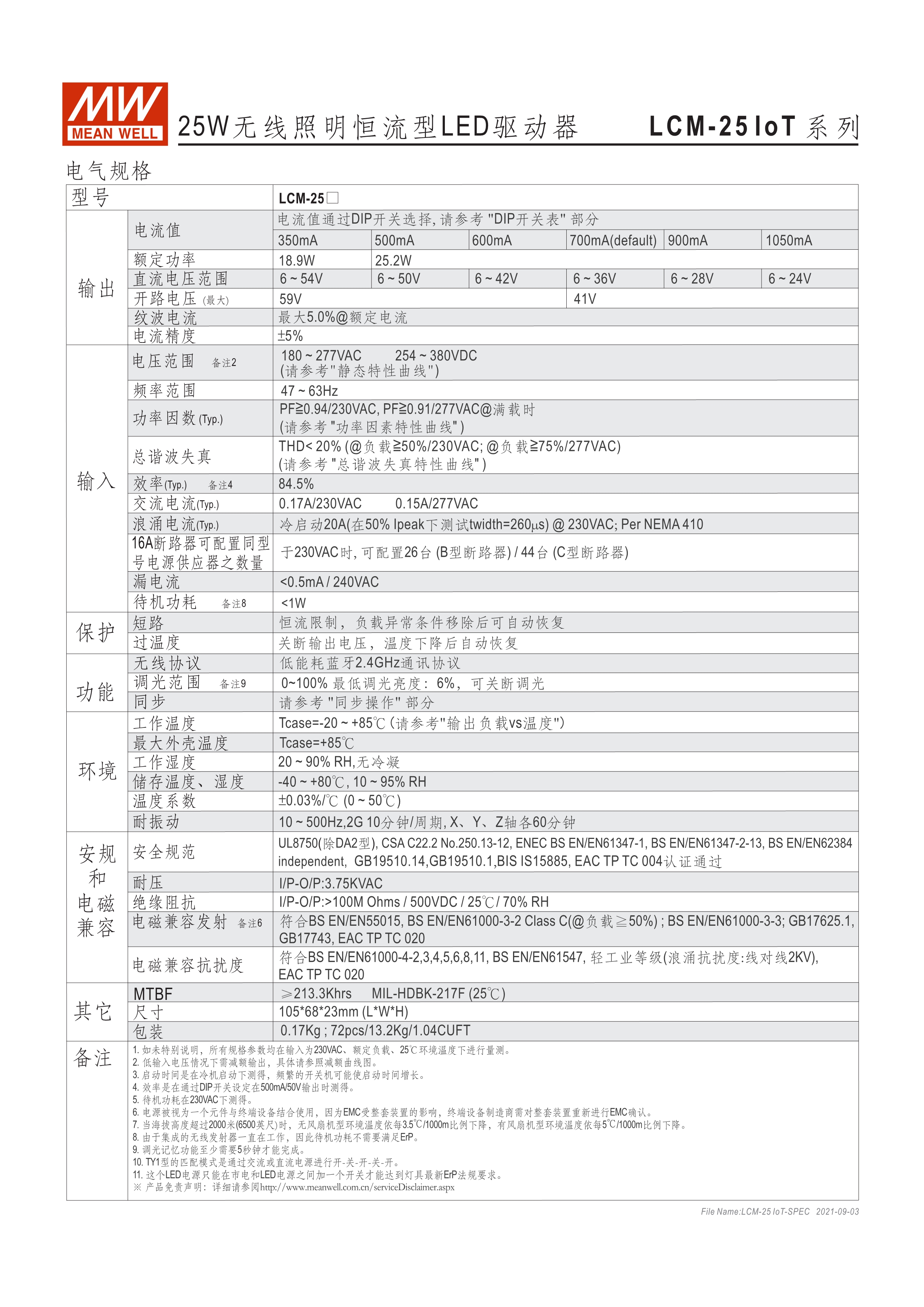 恒流輸出模式多段可選 無頻閃設(shè)計 塑料外殼及符合Class II無地線設(shè)計 主動式PFC設(shè)計 調(diào)光功能:全系列藍芽智能控制及Push Dim(僅LCM系列) 雷擊保護耐壓設(shè)計2KV(L-N) 保護功能:短路、過電壓、過溫度