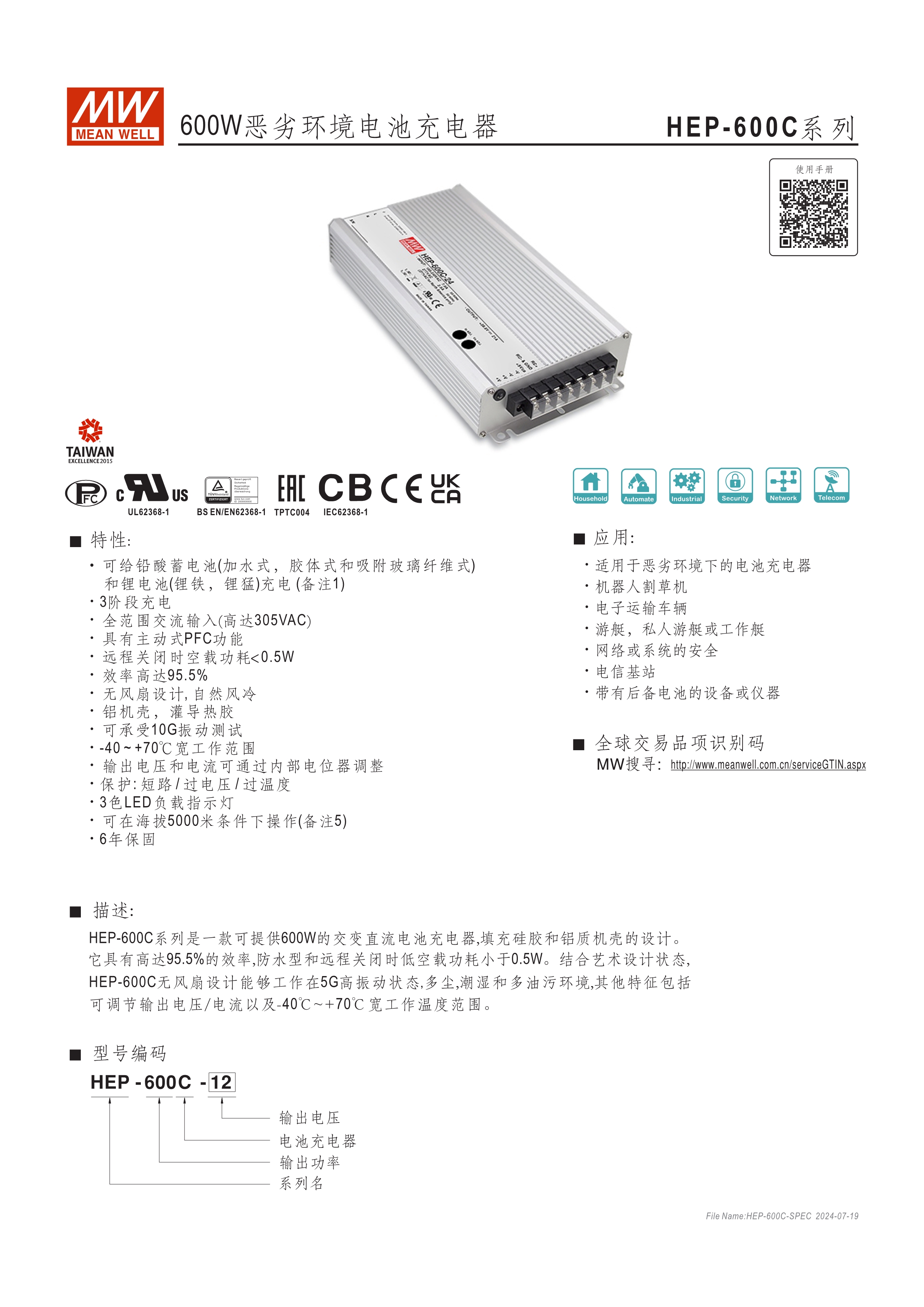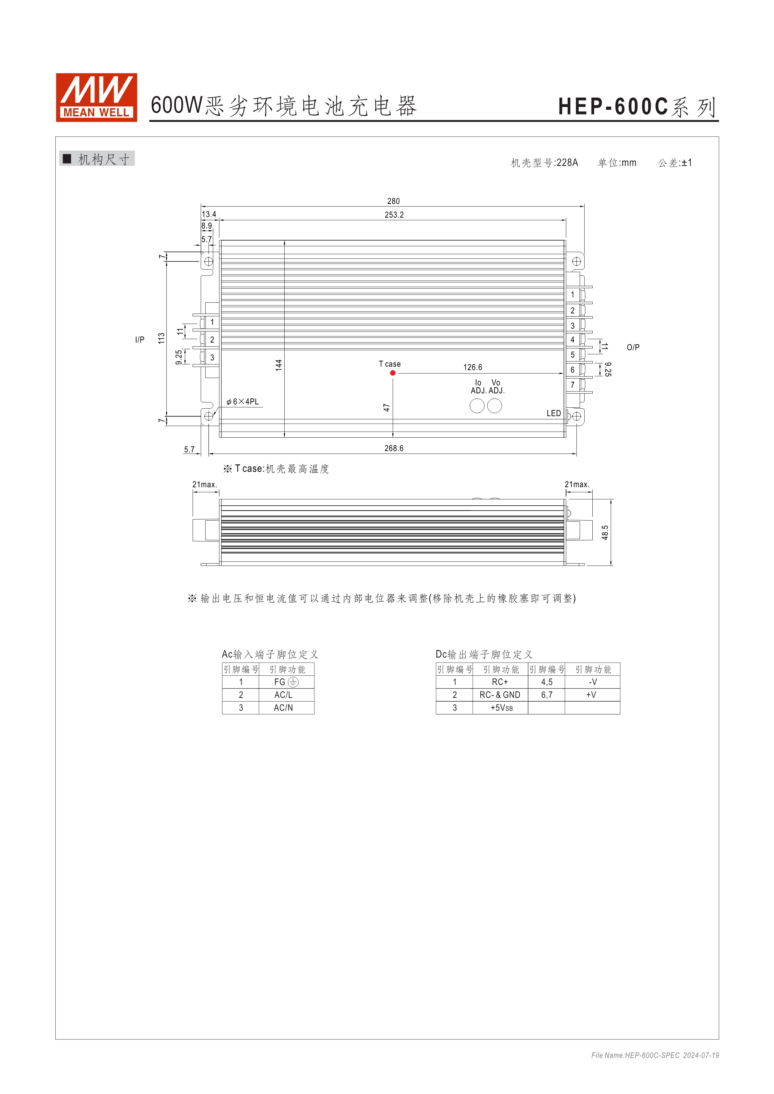 鋁殼、無風(fēng)扇、內(nèi)灌導(dǎo)熱膠 -40~+70oC超寬溫操作溫度 耐震10G 可使用於5000M高海拔 可透過VR調(diào)整充電電壓 (11.5~15.1V, 23~30.2V, 46.1~60.5V) 可透過VR調(diào)整充電電流50~100% 保護功能:短路、過壓、過溫度 6年保固