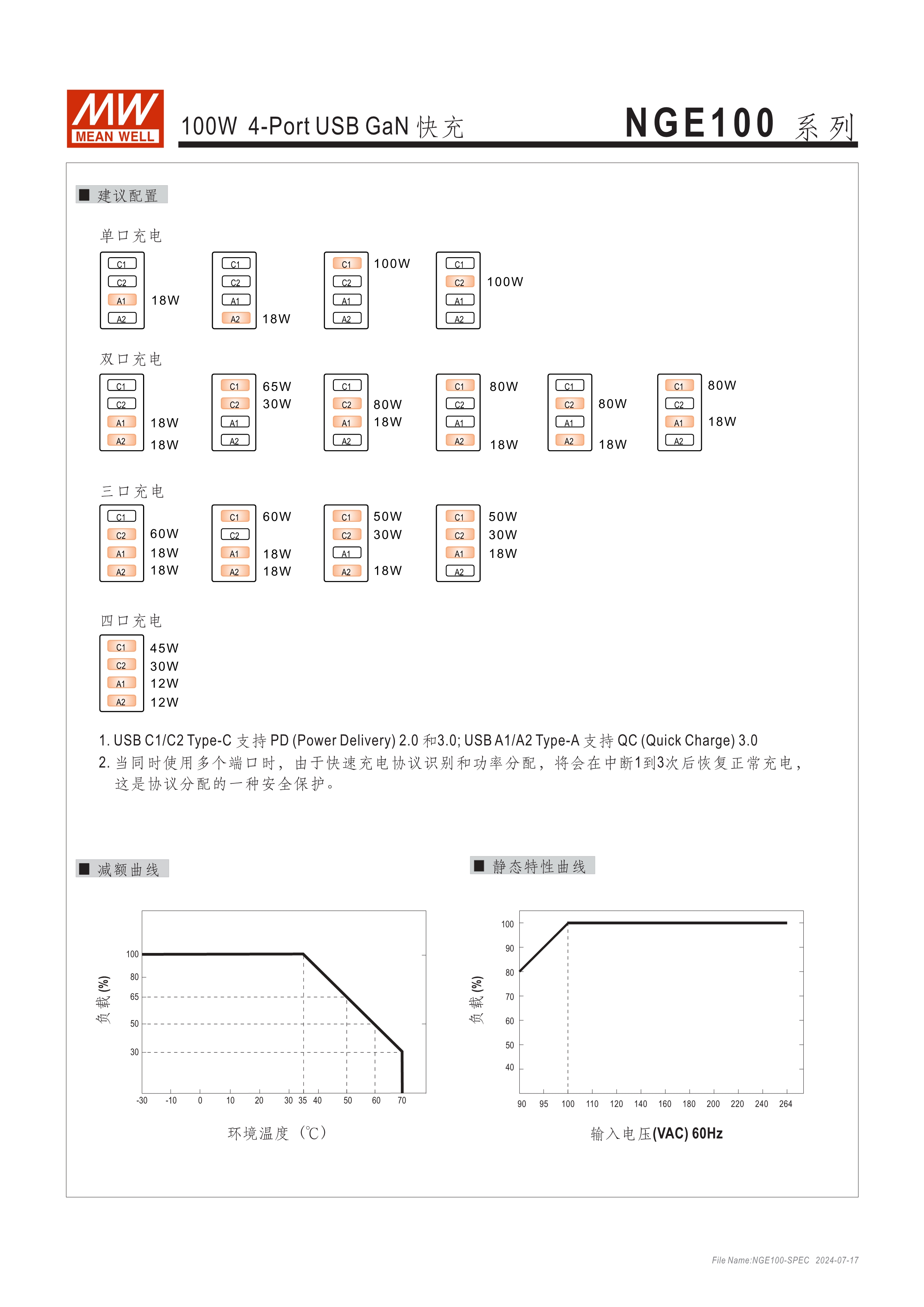 一臺可同時充多種裝置 國際版: AC插頭可變換(NGE100); 美規(guī)版: AC插頭不可換,可折疊(NGE100U) 全球國際認證 USB-2C2A,4-Port皆可獨立快充 USB-C單port可支援最高100W快充 支援QC2.0、QC3.0、PD3.0 自動偵測電壓:5V/ 9V/ 12V/ 15V/ 20V 保護功能 : 短路、過載、過溫 空載損耗<0.3W 能效等級Level VI 尺寸小巧 (62x 30x 85.5mm) 附贈兼具充電及資料傳輸?shù)腡ype-C線 (100cm) 3年保固
