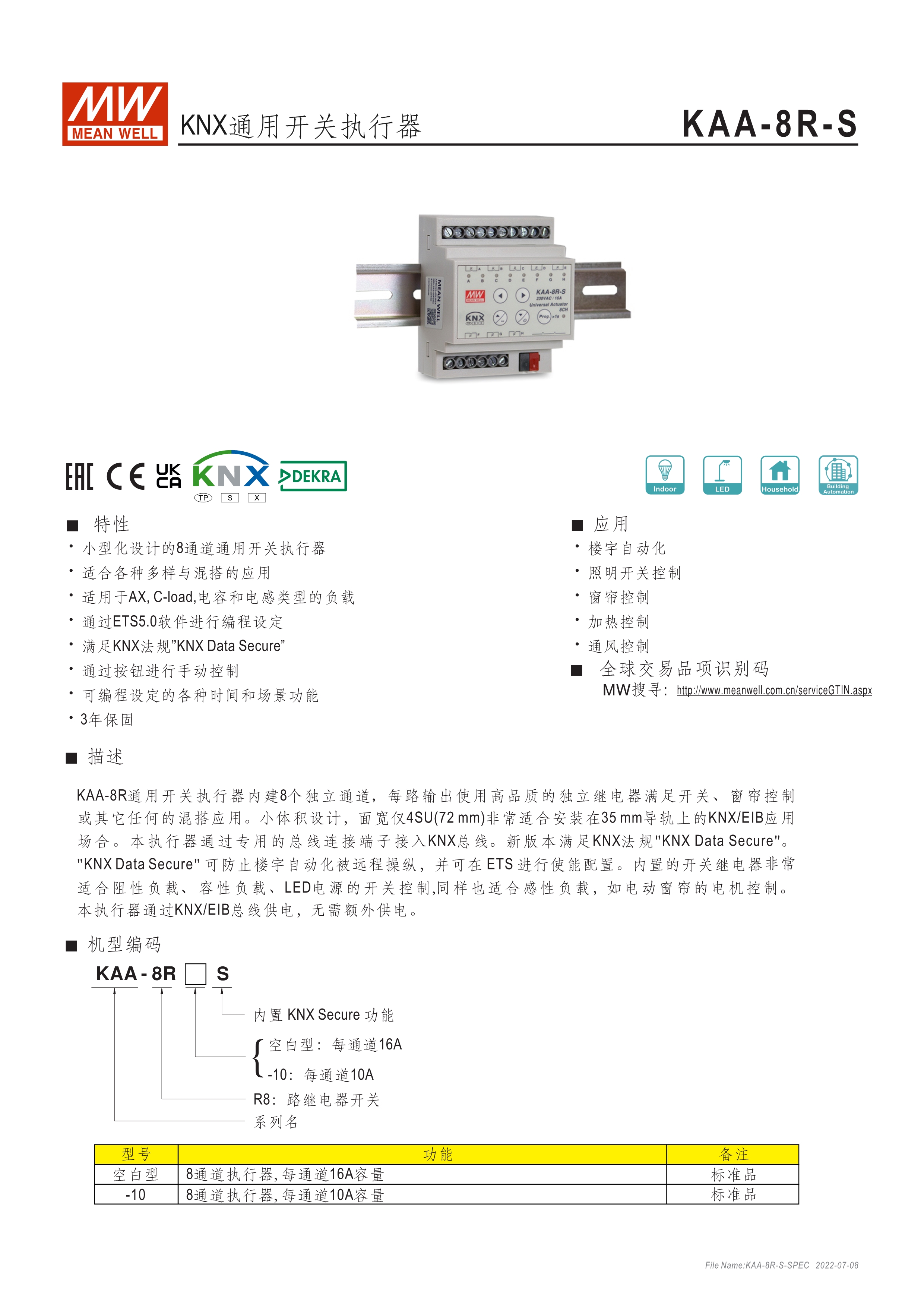 8通道小型化設(shè)計執(zhí)行器 適合于各式應(yīng)用與混搭模式 適用于AX,C-load,電容和電感類型的負(fù)載 通過ETS5.0軟件編程 可通過按鈕進(jìn)行手動控制 可編程各種時間和場景功能 3年保固