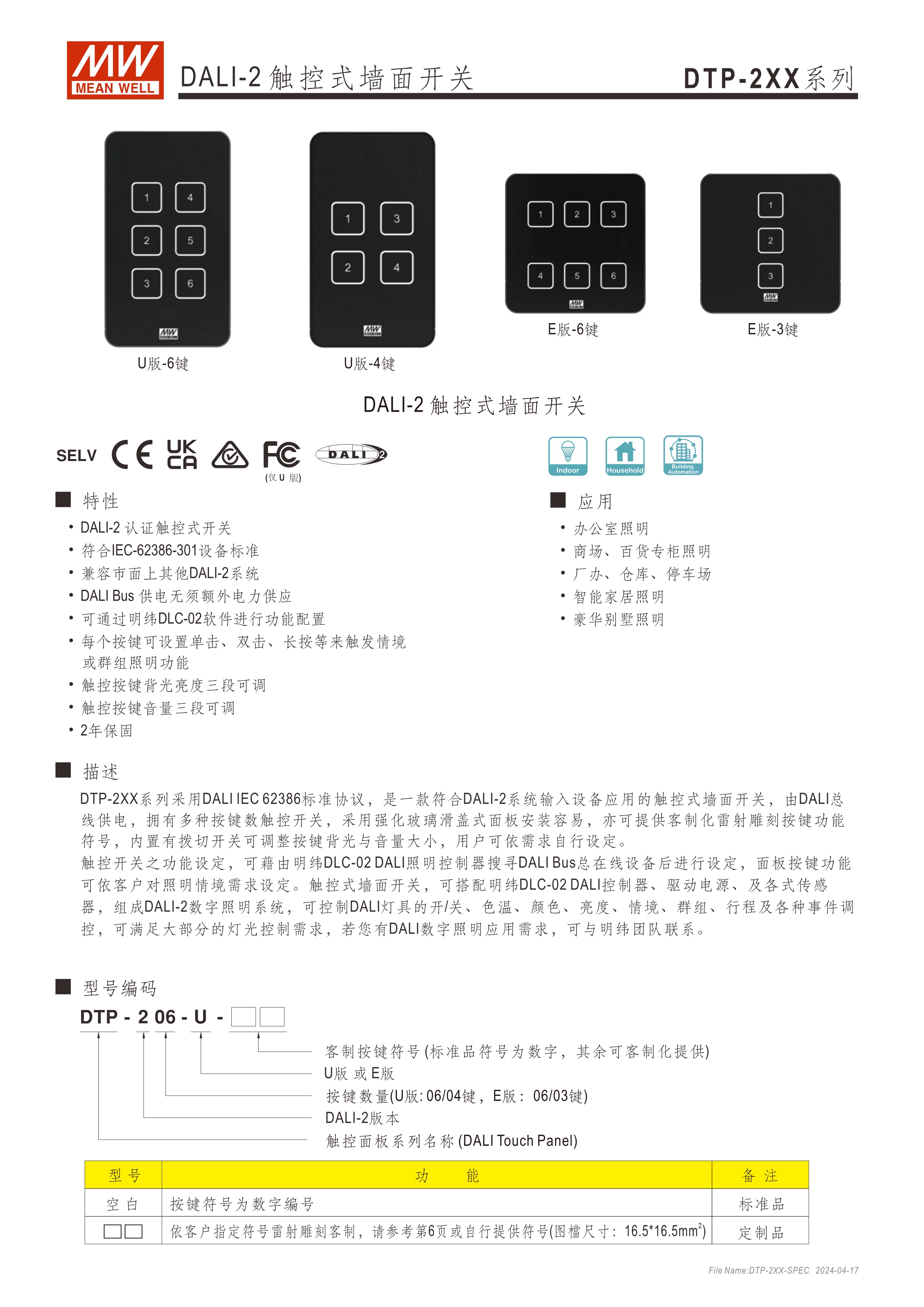 DALI-2 認(rèn)證觸控式開關(guān) 符合IEC-62386-301標(biāo)準(zhǔn)設(shè)備 DALIBus供電無須額外電力供應(yīng) 每個(gè)按鍵可設(shè)置單擊、雙擊、長(zhǎng)按等來觸發(fā)情境或群組照明功能