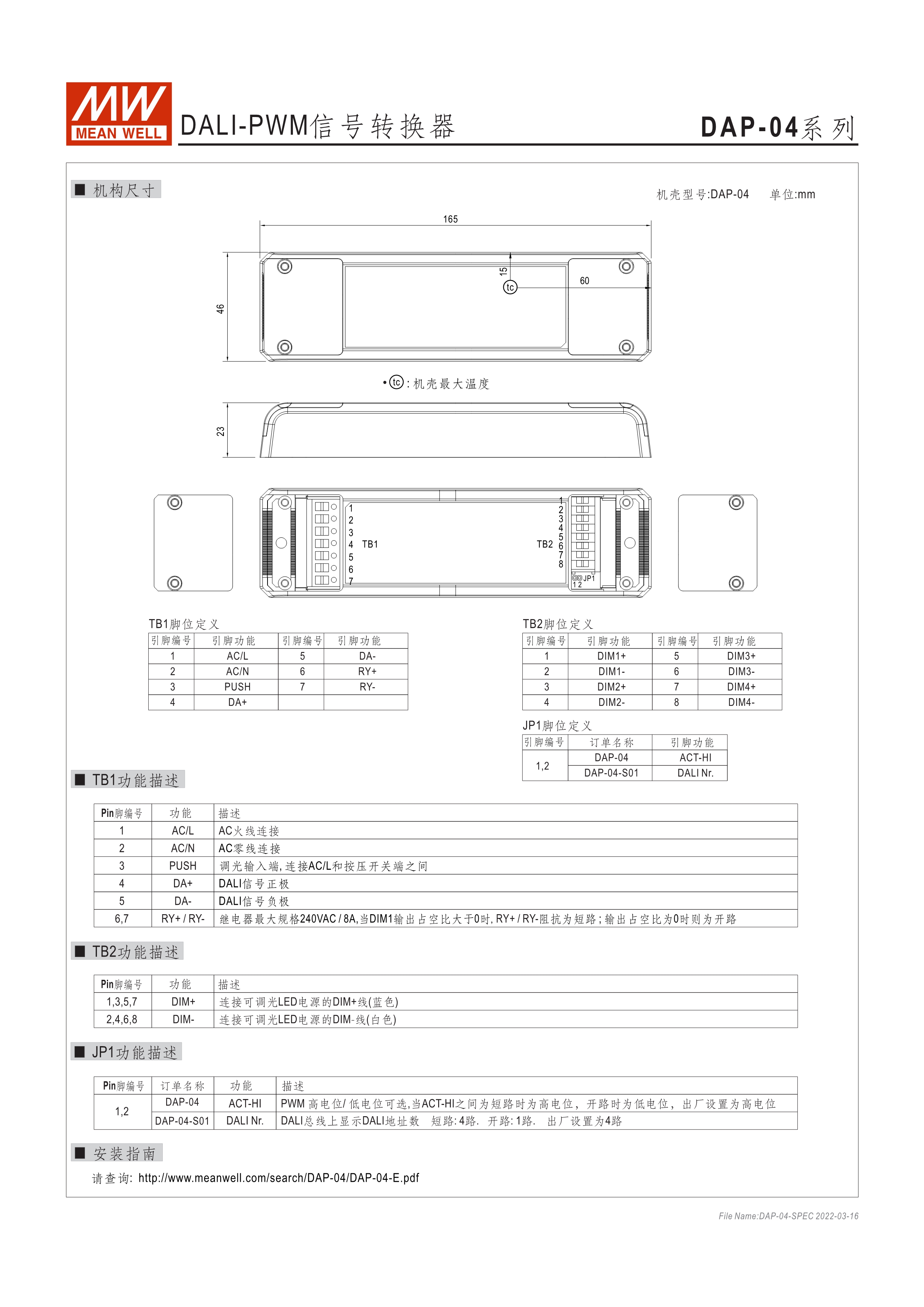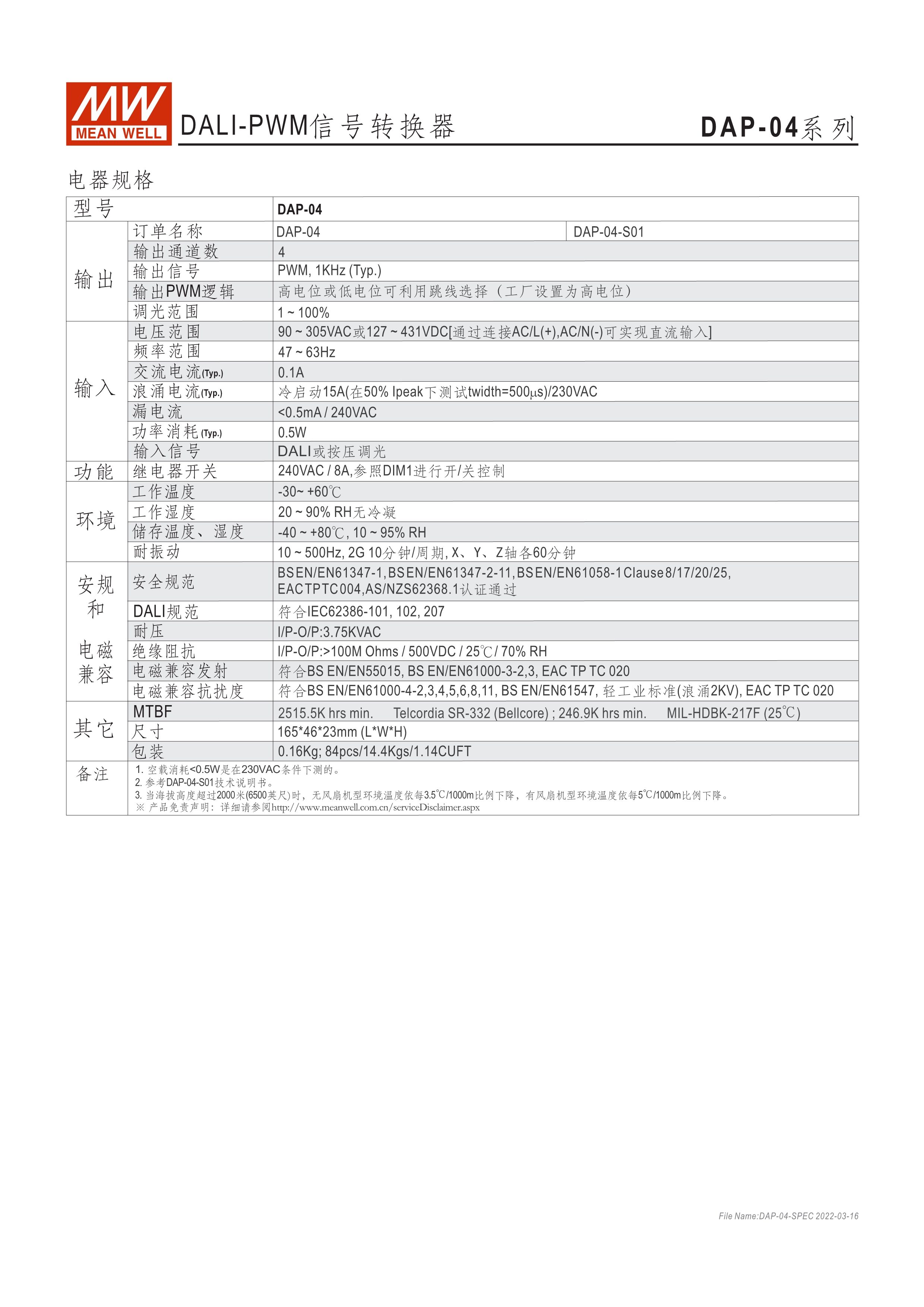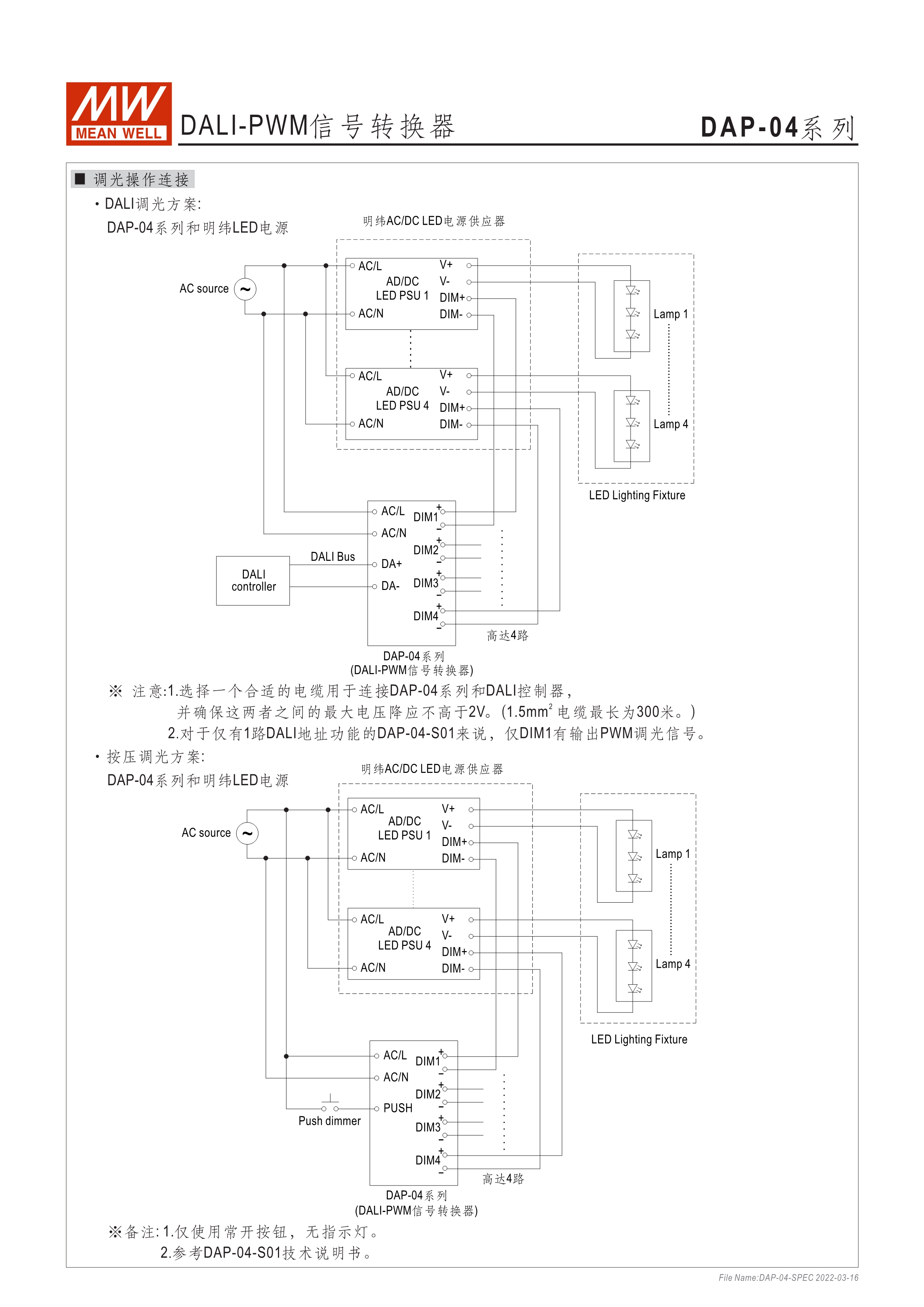 90~305VAC交流輸入 DALI訊號轉(zhuǎn)換為PWM訊號 4組DALI可尋址輸出通道 符合DALI標(biāo)準(zhǔn)(IEC62386-101, 102, 207) 適合與明緯具3合1調(diào)光功能之AC/DC LED電源供應(yīng)器搭配使用