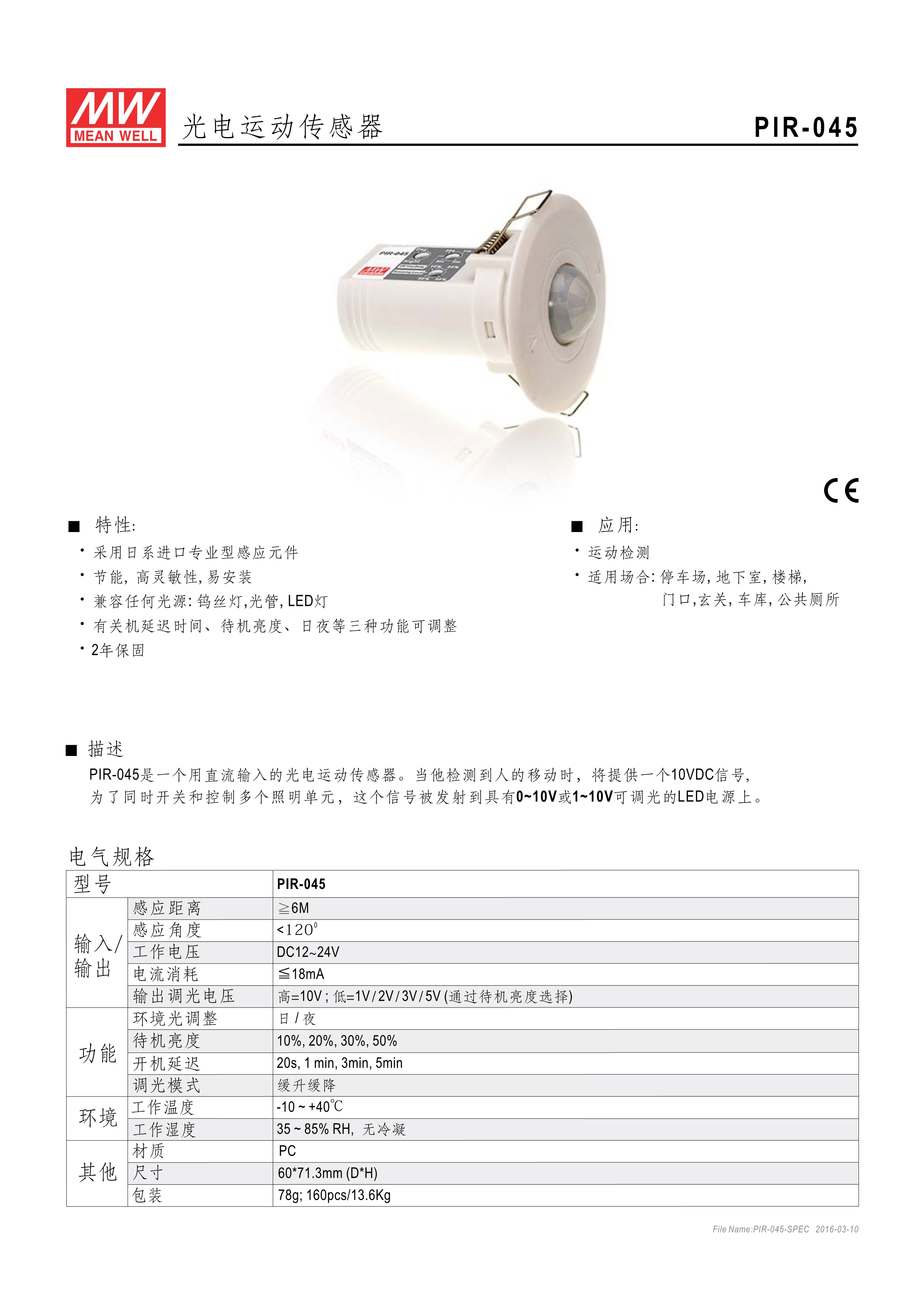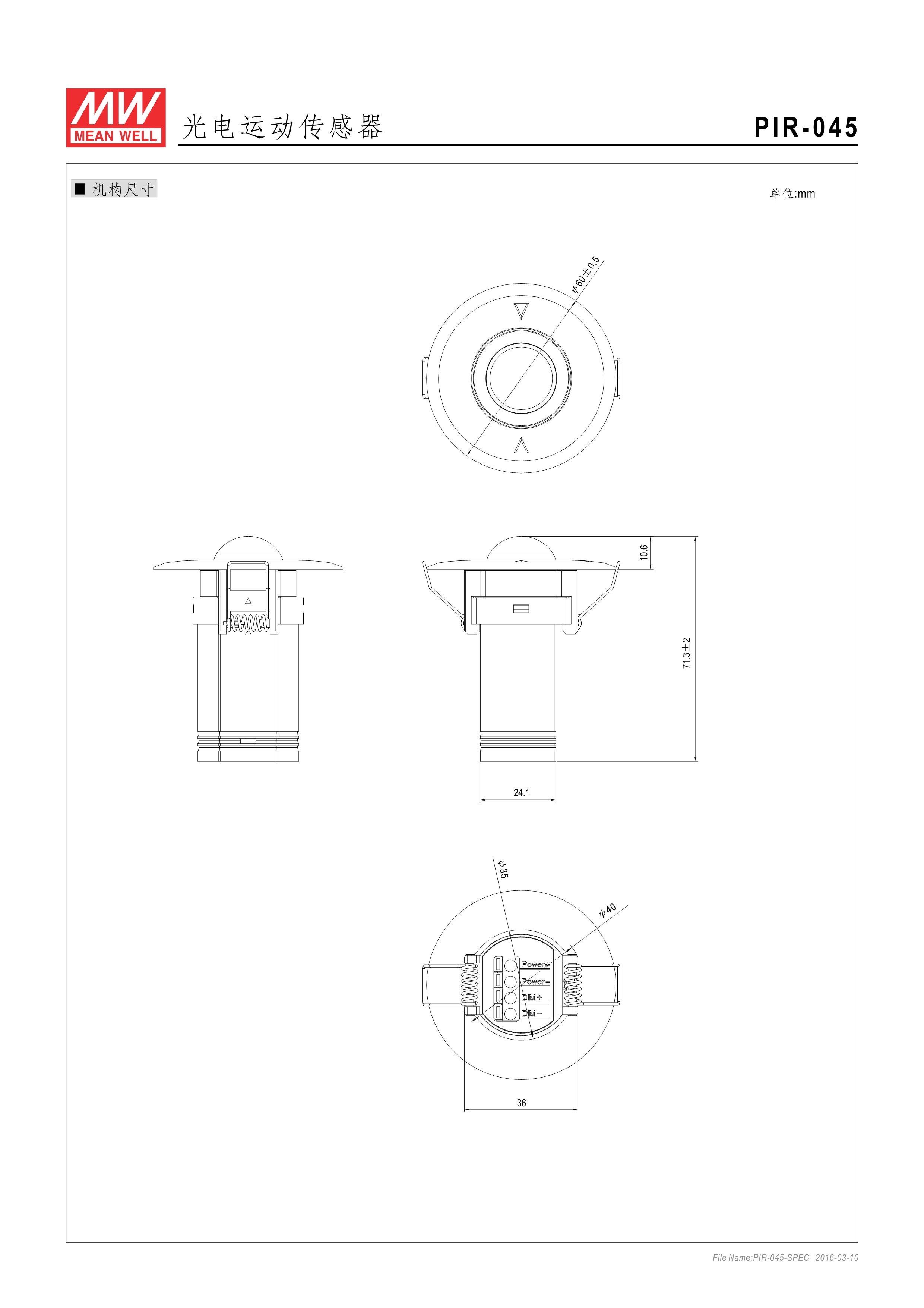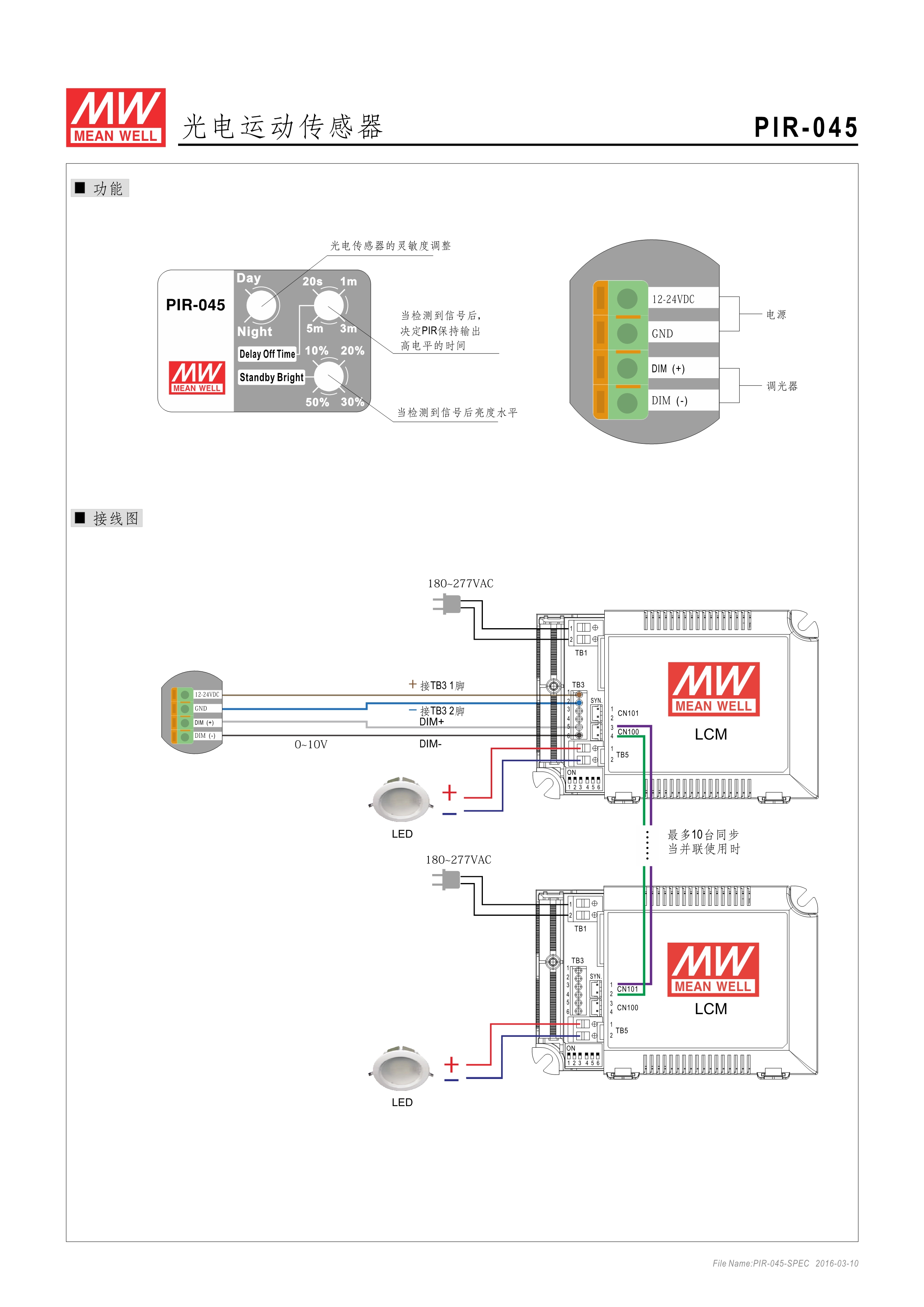 內(nèi)置被動紅外線傳感器(PIR)模塊 MCU控制器、無繼電器 關(guān)燈延時(shí)/分級調(diào)光/靈敏度 可調(diào)