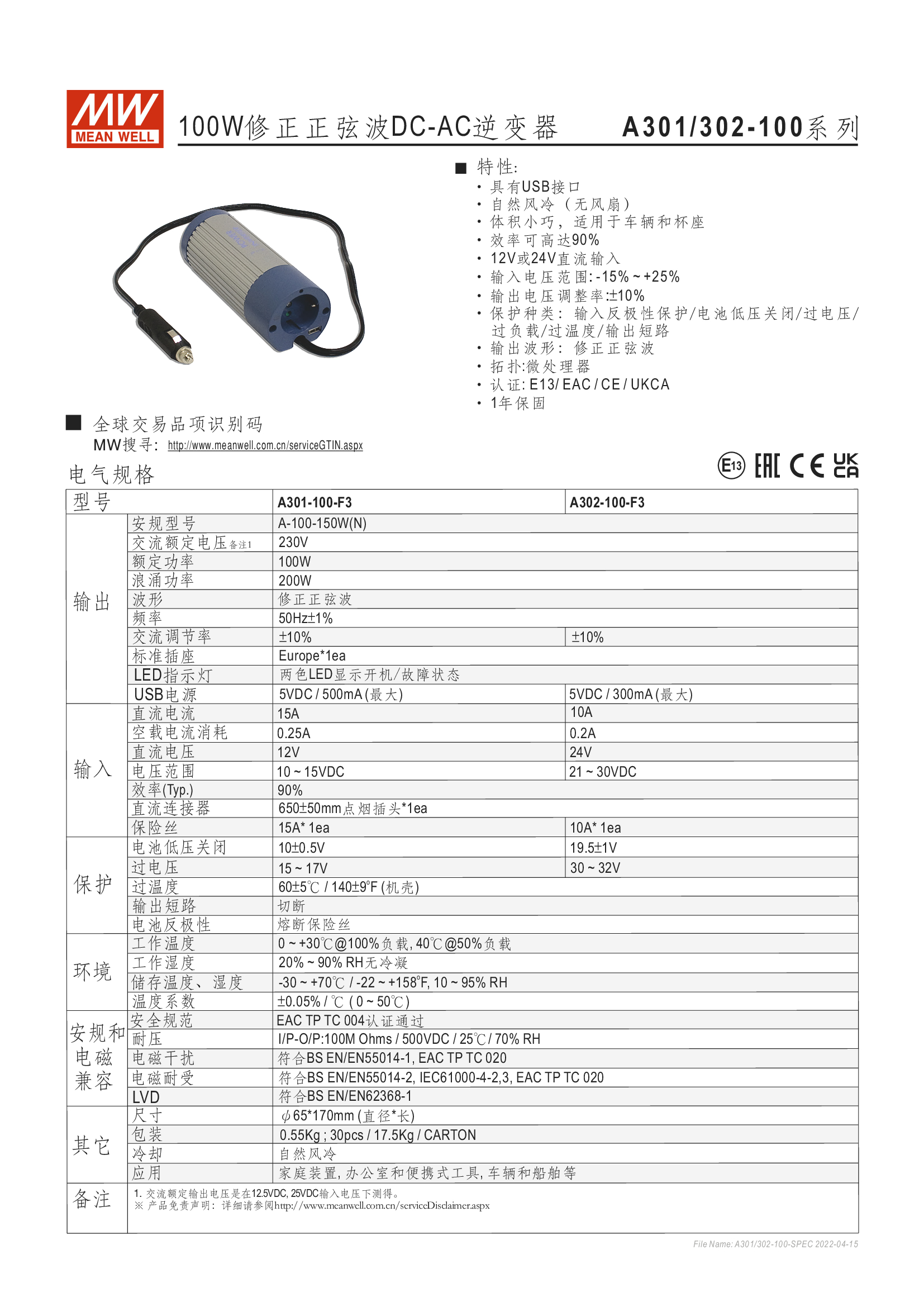 功能特性 修正正弦波, 適用於阻性負(fù)載 經(jīng)濟(jì)型 1年保固期