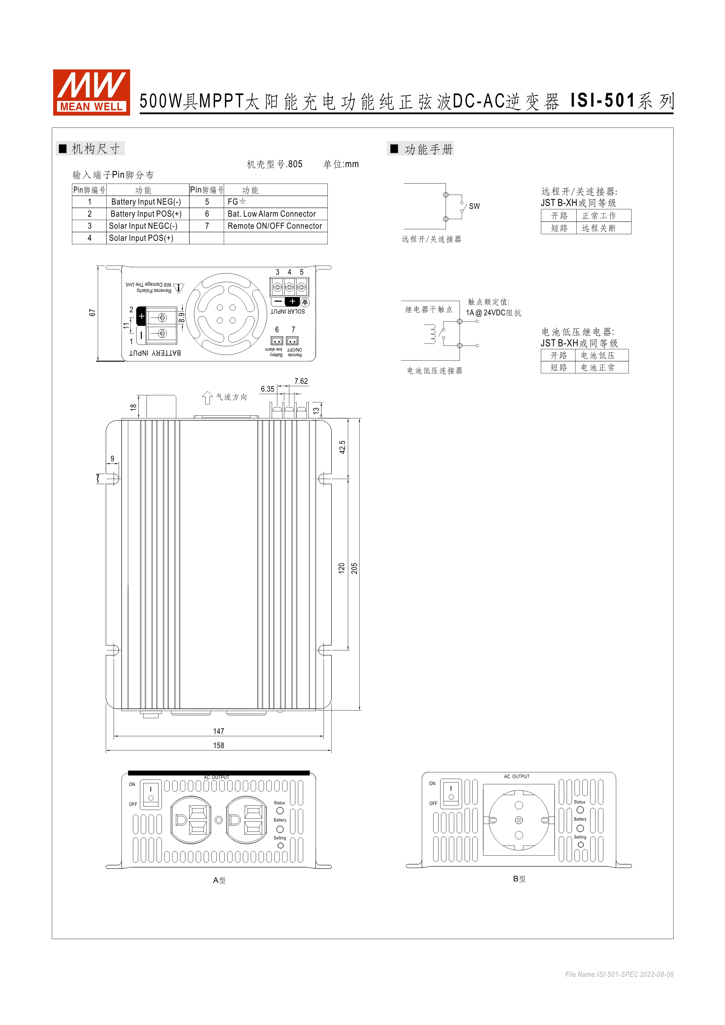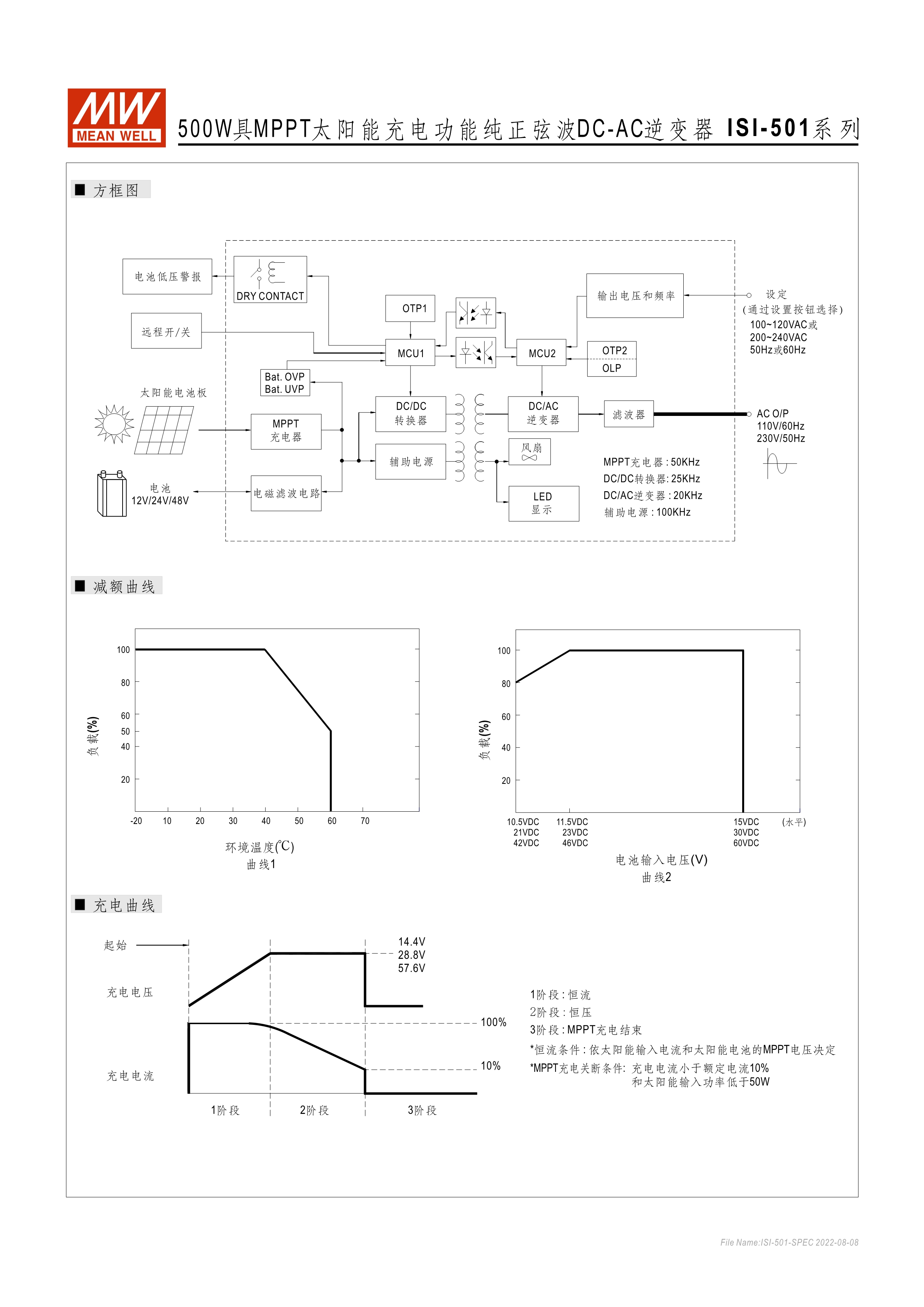 ISI-500: 內(nèi)建MPPT太陽能充電器方波輸出機種 ISI-501: 內(nèi)建MPPT太陽能充電器正弦波輸出機種 具備可瞬間承受200%輸出之能力 ISI-500系列為2年保固期; ISI-501系列為3年保固